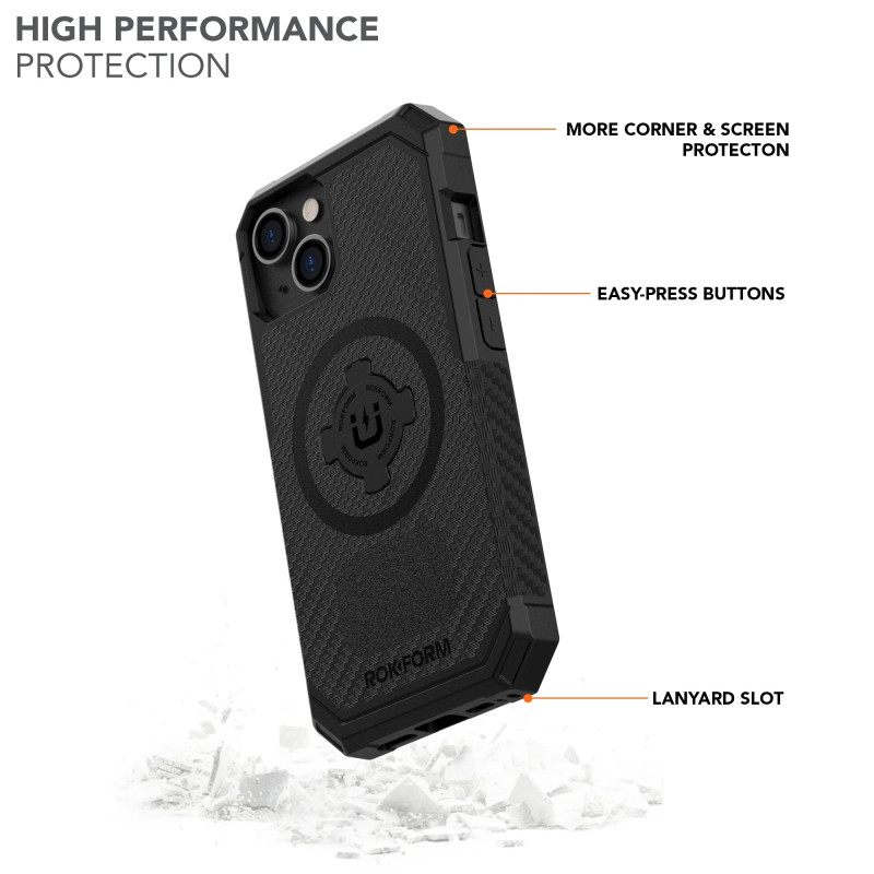 ALL NEW iPhone 14 Rugged Case Built for Life-On-The-Go: The latest generation of the ROKFORM Rugged Series case for the iPhone 14 is our best yet. Durable and functional on the inside and out, the new Rugged series builds on its reputation as one of the most versatile iPhone 14 cases around. Extra strength MagSafe® compatible magnet array provides a mind-blowingly powerful hold to all MagSafe® accessories and any magnetic surface. The integrated RokLock® mount allows for fast and secure mounting on bikes, motorcycles, cars, and more. Combine all that with 360-degree military-grade drop protection and a slim feel that easily slides in and out of your pocket to have ROKFORM’s top-of-the-line Rugged case.