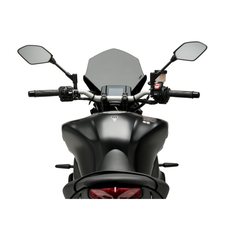 Designed and manufactured in Barcelona, under the most innovative technology, the NG Touring windshield from Puig will become your perfect ally to gain all the comfort you need on the road, while maintaining the sport character of your Yamaha. Its aggressive and minimalist design, with an exclusive matt black finish on its exterior and the silver logo, will allow the piece to adhere to the motorcycle without compromising its aesthetics.