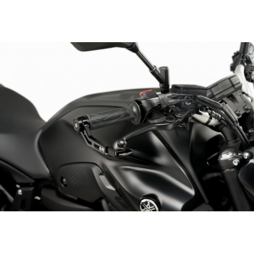 The brake lever protector is born from the need to avoid accidental contact with other riders, avoiding the brake actuation and subsequent fall. Through its design, Puig has prioritise the protection and integration of the protector in the set. A two-way adjustable system for the protector, longitudinal and perpendicular to the grip, has been accomplished.