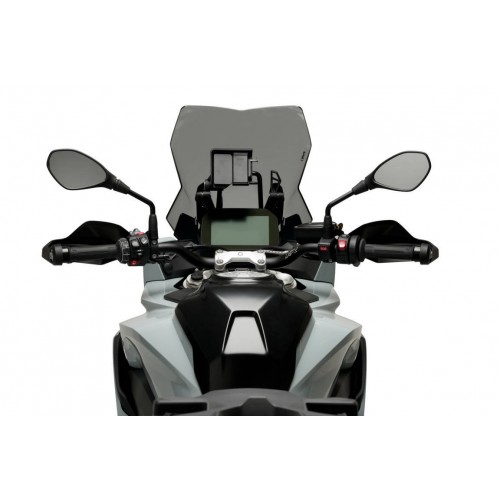 Touring screens, developed by Puig in Barcelona, are designed with the objective to aerodynamically protect the rider without affecting his/her field vision. In addition, these screens fit perfectly with the adventure style and aesthetics of the trail models thanks to their wide range different sizes.