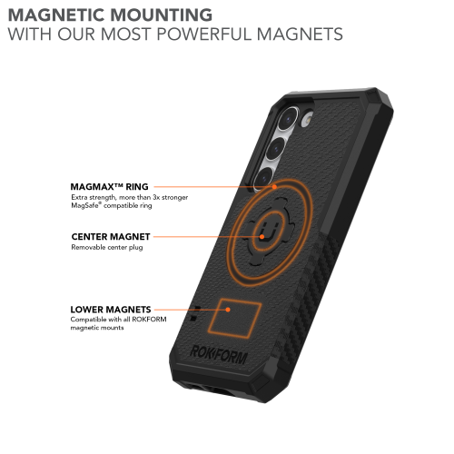 - Rokform’s best-selling Samsung Rugged case is better than ever for the new Galaxy S23+. Now with an integrated MAGMAX™ magnet system compatible with most 3rd party MagSafe accessories. Now you can enjoy MagSafe convenience with your new S23+ and 3x more magnetic hold than ever before. Turn your S23+ from a great phone into a powerhouse of functionality while keeping it safe from damage inside the all-new ROKFORM S23+ Rugged case.