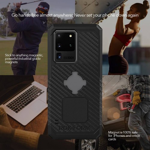 With a Rugged Case on your Galaxy S20 Ultra, you will rest easy knowing your phone will withstand any slips or drops up to 6 feet. With Rokform's magnetic technology built-in, you'll discover new ways to use your phone, from non-obtrusive GPS navigation device to set a timer at the gym.