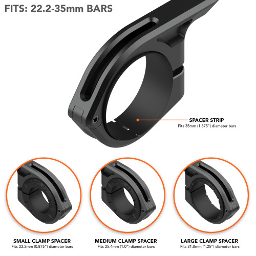FITS ALMOST ANY BARS: Our phone mount can fit 22.2mm (7/8"), 25.4mm (1”), 31.8mm (1 1/4”), and 35mm (1 3/8”) bars