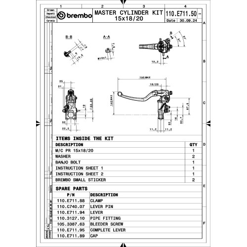 The Brembo CorsacortaRR master cylinder includes RCS (Ratio Click System), which allows you to adjust the pump center distance to the value "18", or "20", simply by turning the adjuster located on the front of the pump 180 ° with a screwdriver. driving lever, this allows the rider to reach the complete feeling with his bike and adapt the braking performance according to his riding style, the bike, the weather and road conditions, relying on three clutch pumps in one. In addition, by exploiting the mix resulting from the variation of the wheelbase from 18 to 20 and the three maps R, S, N, it is possible to have as many as 6 different combinations.